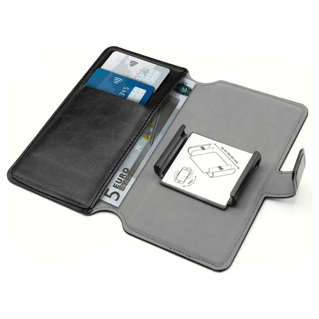 Zaradi nastavljivega krilnega sistema ustreza širokemu spektru pametnih telefonov velikosti do 6 palcev. Zaščita telefona pred udarci in praskami. S tremi režami za kartice in/ali vstopnice lahko s seboj nosite vse najpomembnejše stvari.. Enostaven dostop do fotoaparata in vseh funkcij pametnega telefona.