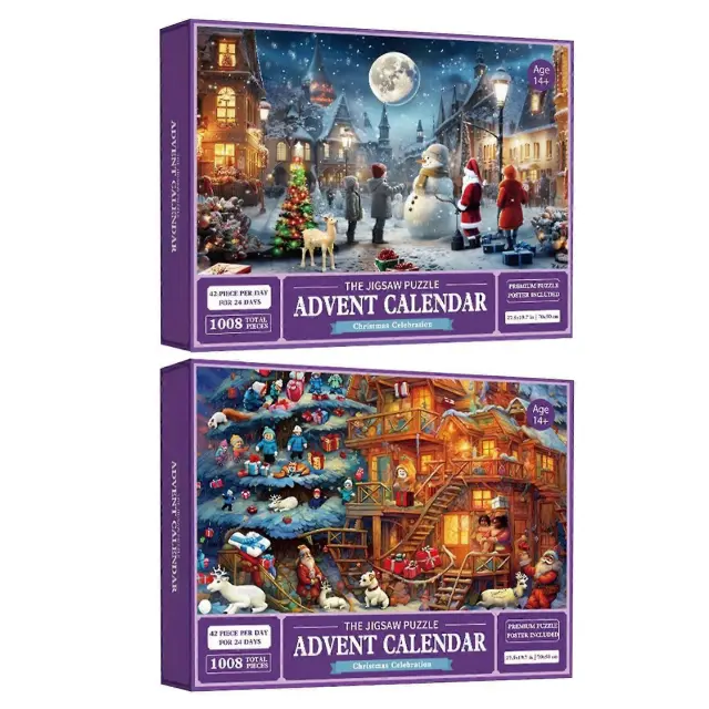Puzzle Adventni koledar 2023, božični adventni koledar Puzzle, 24 kosov 1008 kosov sestavljanka darilo za odštevanje za božič, adventni koledar 2