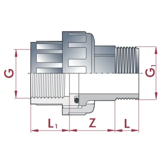 PVC-U Navojna Spojka 1 Col IG x AG Enostavna montaža, visoka odpornost