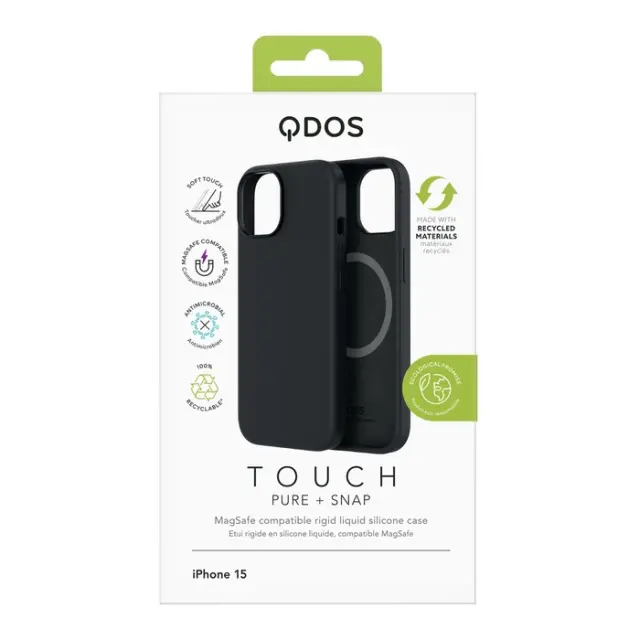 QDOS, Ovitek Touch Pure za iPhone 15 z združljivostjo Snap MagSafe, ?rna