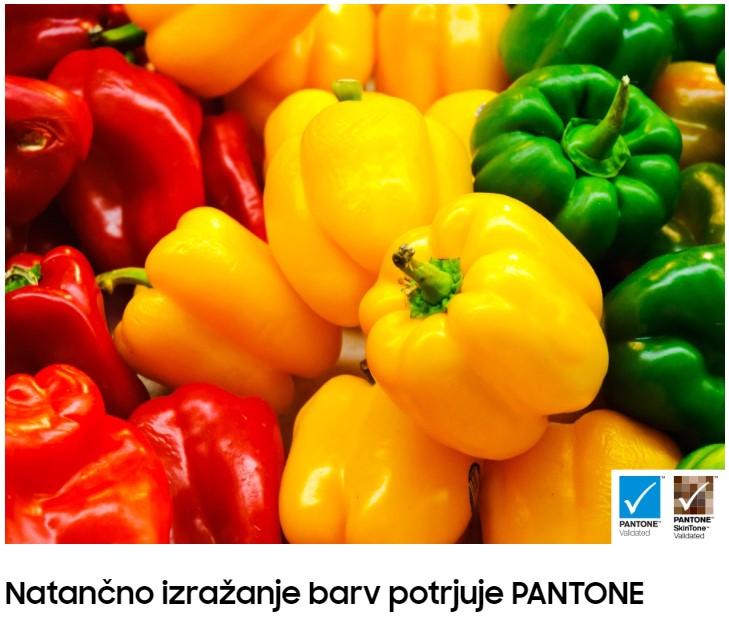 Samsung OLED tehnologija barvnega kartiranja prikazuje natančne barve za resnično predstavitev barv. Uživajte v več kot 2.000 PANTONE barvah in različnih kožnih odtenkih z OLED, ki je prvi na svetu prejel certifikat ''Potrjen s strani PANTONE'' pri vodilnih strokovnjakih za barve na svetu