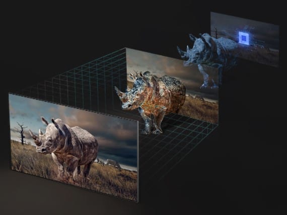 * Izkušnja gledanja se lahko razlikuje glede na vrsto in format vsebine. * Nadgradnja slike ni na voljo pri povezavi z računalnikom in v igralnem načinuZmogljiva 4K nadgradnja slike z umetno inteligenco zagotavlja, da boste vedno imeli polno 4K ločljivost.