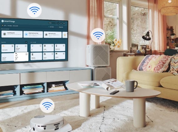 Sprostite se in preostalo prepustite pomočniku. SmartThings se lahko brezhibno poveže na vaše pametne naprave ter jih intuitivno spremlja in nadzoruje. Naprave lahko upravljate neposredno z daljinskim upravljalnikom ali glasom med gledanjem televizorja. * Razpoložljivost tehnologije, funkcij in značilnosti je odvisna od države, ponudnika storitev, omrežnega okolja ali izdelka. Lahko se spremeni brez predhodnega obvestila. * Zahteva Wi-Fi, Bluetooth ali drugo brezžično omrežno povezavo in naprave, registrirane na SmartThings aplikacijo.