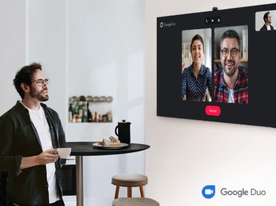 Brezhibno se povežite z vašimi ljubljenimi na velikem zaslonu z Google Duo. Videoklice lahko enostavno opravite z uporabo Samsung Slim Fit kamere ali kamere na vašem pametnem telefonu. * Potrebna je dodatna združljiva Samsung SlimFit kamera, združljiva Logitech spletna kamera ali mobilna kamera.