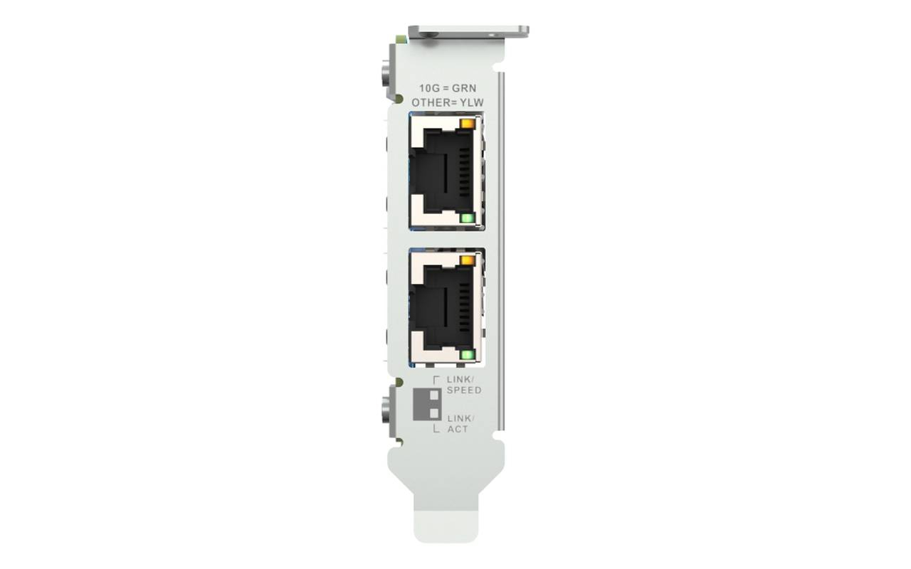 QNAP QXG-10G2T je omrežna razširitvena kartica PCIe Gen3 (združljiva s PCIe Gen2) 10GbE s krmilnikom Marvell® AQtion AQC107,