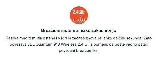 JBL QuantumSPHERE 360™, ki ga poganja JBL QuantumENGINE in je na voljo prek ključa/priključka USB-C, vam omogoča profesionalno 3D-zvokovno pozicioniranje na vašem računalniku. Prilagojena kalibracija algoritma JBL z vgrajenim senzorjem za sledenje glavi in mikrofonom je izdelana izključno za JBL Quantum 910 Wireless, kar igralcem računalniških iger omogoča natančnost pozicioniranja zvoka naslednje generacije in fiksno, neodvisno zvočno pokrajino, kar izboljša vaše naravne instinkte. JBL QuantumENGINE je opremljen tudi z DTS Headphone X: v2.0.