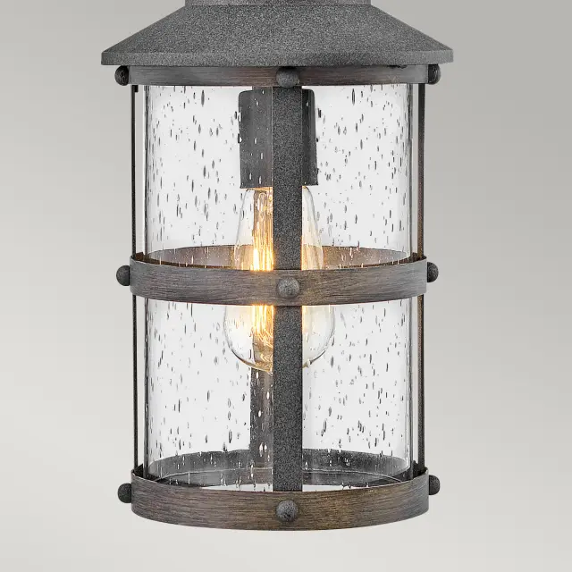Quintiesse Hinkley Lakehouse Zunanja viseča stropna svetilka, starani cink z naplavljenim lesom, siva, IP44