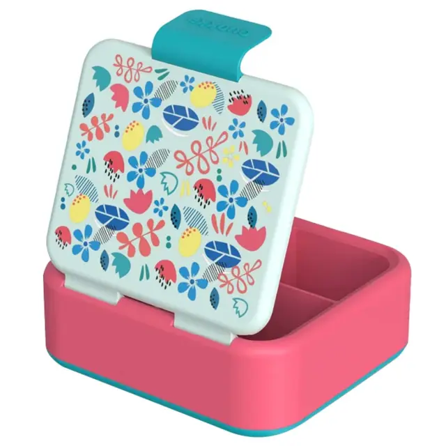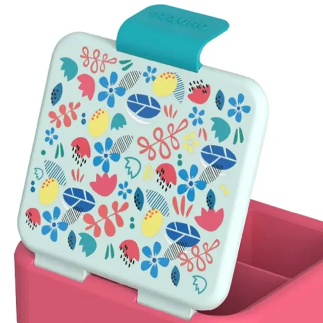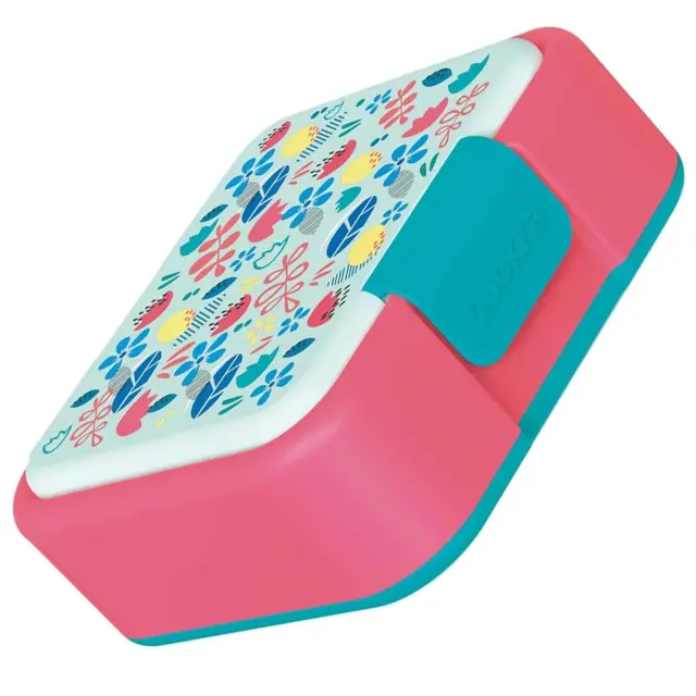 Quokka, Plastična posoda za hrano z dvojno steno in cvetlično dekoracijo, Modro / Roza