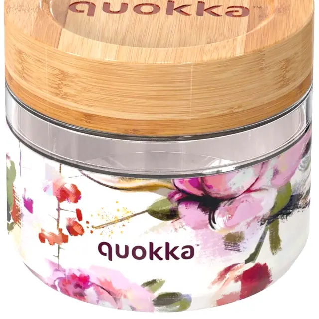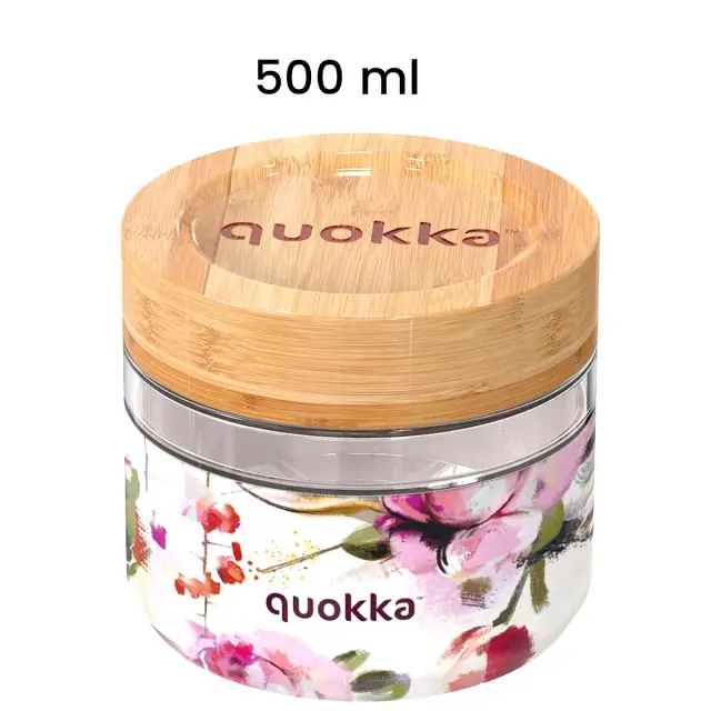 Quokka, Posoda za hrano 500ml, dekoracija temne rože z bambusovim pokrovom, Roza