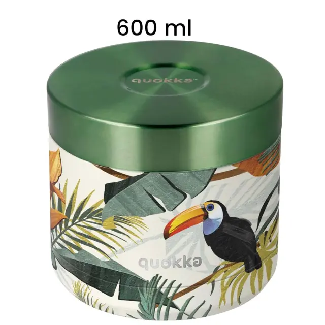 Quokka, Posoda za hrano 600ml, model Whim z tropskim motivom, Zelena