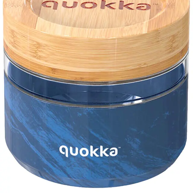 Quokka, Posoda za hrano 820ml, dekoracija lesni vzorec z bambusovim pokrovom, Modra