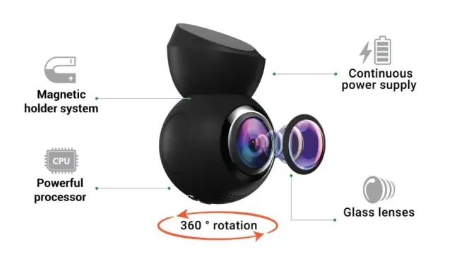Zahvaljujoč majhni priročni velikosti avto kamera ne omejuje voznikovega vidnega polja. Kamera se povsem preprosto namesti na vetrobransko steklo vašega vozila zahvaljujoč 3M lepilu za vetrobranska stekla in magnetnemu nosilnemu sistemu, ki poskrbi za enostavnost vsakodnevne uporabe naprave. Napajanje poteka neposredno preko držala oz. nosilca preko 12V priklopa na avtomobilski vtičnici, ki se nahaja že v vsakem avtomobilu.