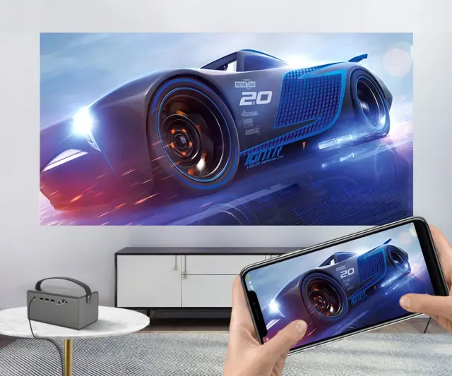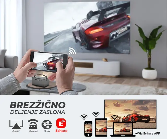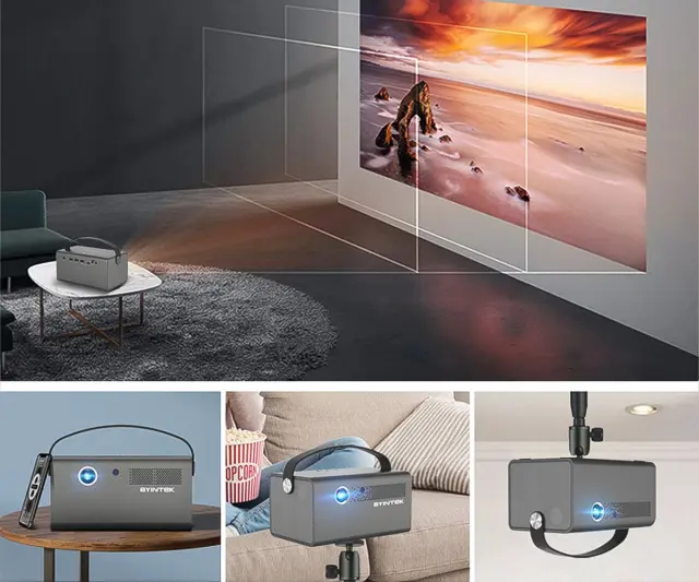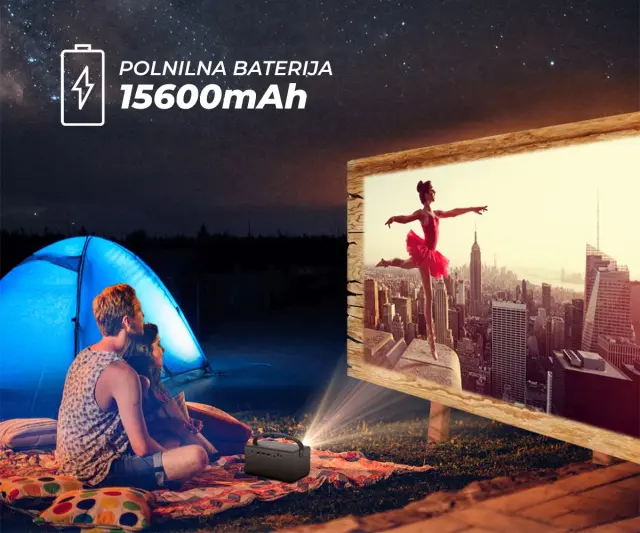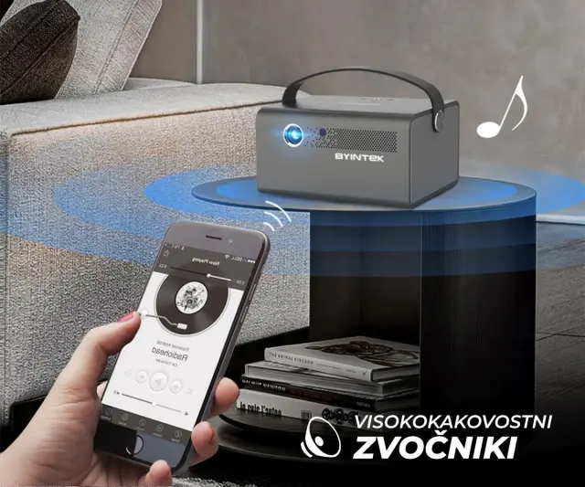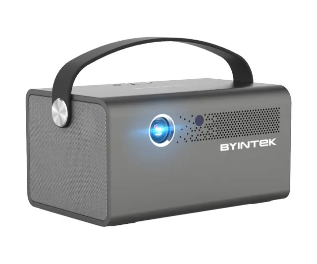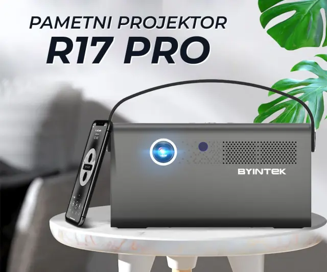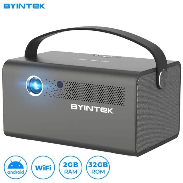 BYINTEK R17 PRO 3D LED DLP Android, WiFi, BT5.0, 2GB + 32GB, baterija, 750 lumnov, dvojni zvočniki, max. 4K UHD, HDMI prenosni mini projektor srebrn