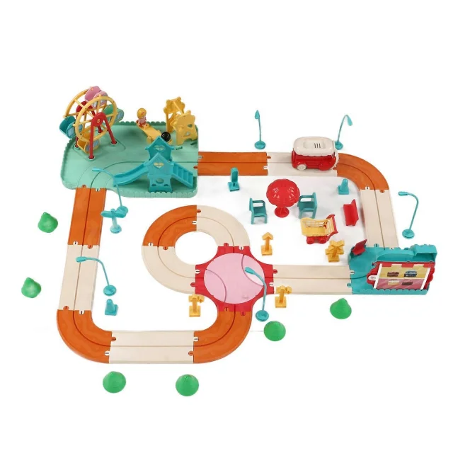 Race Car Tracks Igrače Puzzle Sestavljeni električni tirnica Igralni komplet za fante Dekleta Darilo za dan otroka