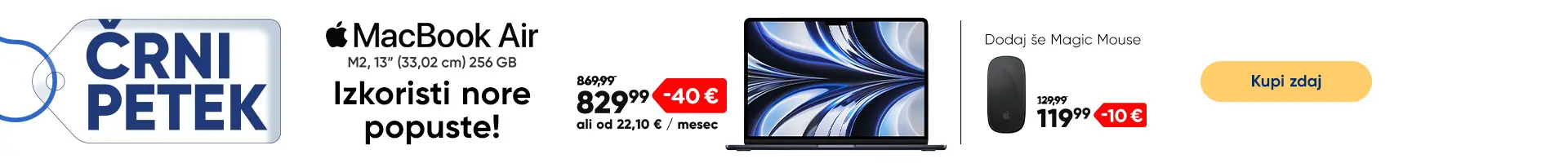 Apple MacBook Air 13, M2 (8/10) 8GB/512GB Space GreyNa zalogiProdajalec: Big BangBrezplačna poštnina za člane klubaDodaj v košarico