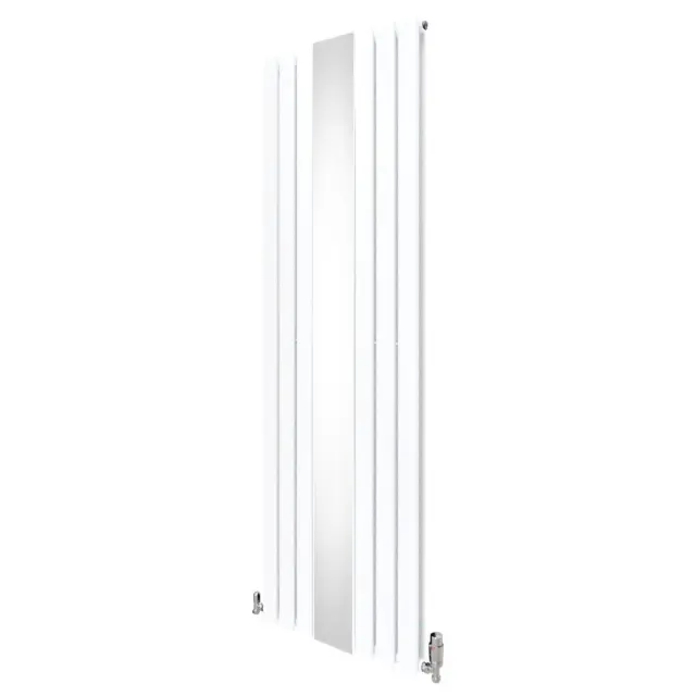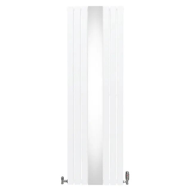 Vnesite toplino v svoj dom z našim vrhunskim navpičnim radiatorjem z ravnim panelom v beli barvi z elegantnim osrednjim ogledalom in termostatskim kromiranim kompletom ventilov – popolna mešanica brezčasne elegance in sodobne učinkovitosti.