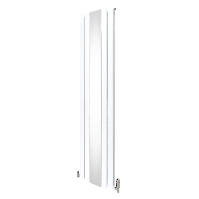 Vnesite toplino v svoj dom z našim vrhunskim navpičnim radiatorjem z ravnim panelom v beli barvi z elegantnim osrednjim ogledalom in termostatskim kromiranim kompletom ventilov – popolna mešanica brezčasne elegance in sodobne učinkovitosti.