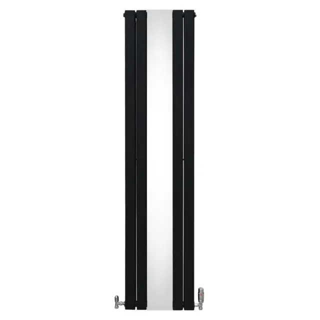 Vnesite toplino v svoj dom z našim vrhunskim navpičnim radiatorjem z ravnim panelom v črni barvi z elegantnim osrednjim ogledalom in termostatskim kromiranim kompletom ventilov – popolna mešanica brezčasne elegance in sodobne učinkovitosti.