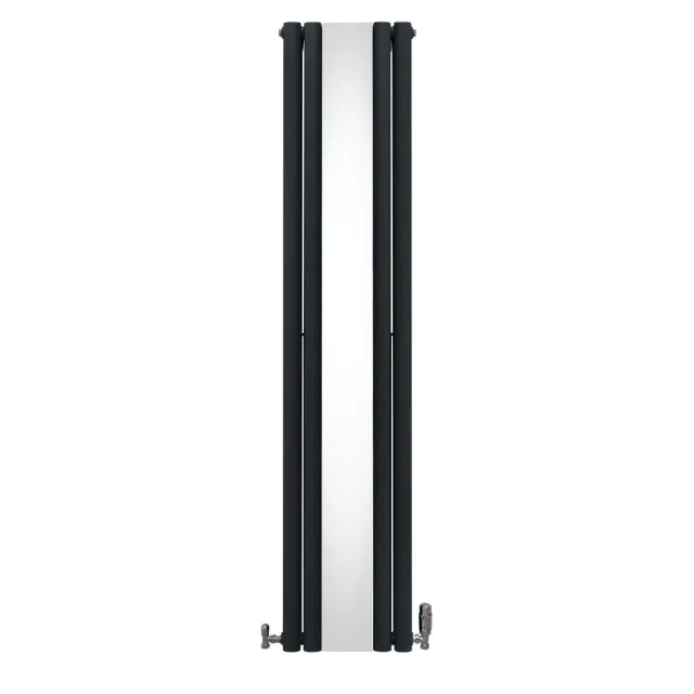 Vnesite toplino v svoj dom z našim vrhunskim navpičnim radiatorjem z ovalno ploščo v antracitno sivi barvi z elegantnim osrednjim ogledalom in termostatskim kromiranim kompletom ventilov – popolna mešanica brezčasne elegance in sodobne učinkovitosti.