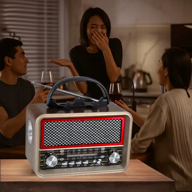 Radijski sprejemnik ponuja jasen in glasen zvok zaradi 10W največje moči, zato glasba in oddaje zvenijo jasno tako v zaprtih prostorih kot na prostem.
