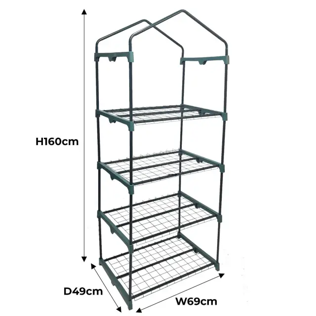 Omogočite svojim rastlinam najboljši začetek življenja s tem rastlinjakom s PE pokrovom. Priročno visok in s 4 nivoji je dovolj prostora za organiziranje vaših rastlin, medtem ko zrastejo dovolj močne, da preživijo na prostem. Vodoodporna PE prevleka vam omogoča odlično vidljivost vaših rastlin, hkrati pa jih ščiti pred vremenskimi vplivi in škodljivimi UV žarki.