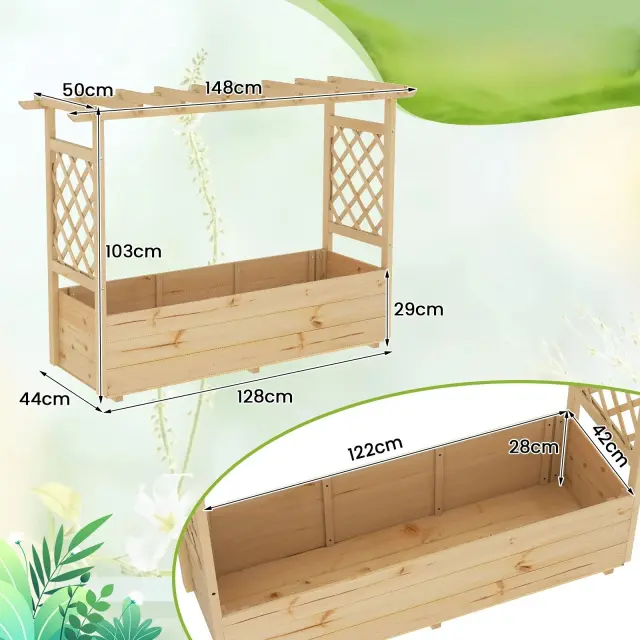 Konstrukcija iz 100-odstotnega borovega lesa: Naša vrtna postelja je izdelana iz naravnega in varnega borovega lesa, ki je trpežen in odporen proti deformacijam ter zagotavlja zanesljivo in trajnostno rešitev za zasaditev. Priročno je, da lahko gladke lesene površine pobarvate ali pobarvate z različnimi barvami ali vzorci in jim tako dodate osebno noto.