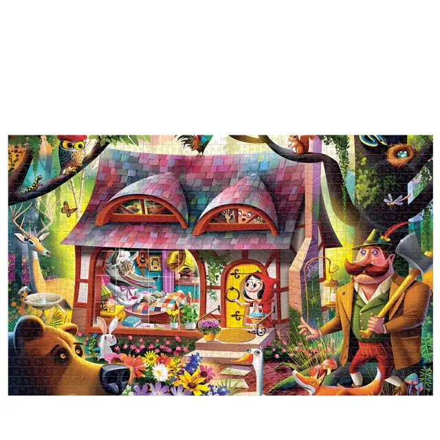 Ta pravljična sestavljanka je sestavljena iz 1000 kosov, ki prikazujejo Rdečo kapico, drvarja in volka v čarobnem prizoru.. Zahvaljujoč tehnologiji Softclick se vsak del sestavi gladko in brez tresljajev.. Ta sestavljanka spodbuja koncentracijo, koordinacijo in potrpežljivost. Idealen je za sprostitev z družino in prijatelji, hkrati pa je tudi zabaven izziv za ljubitelje sestavljank..