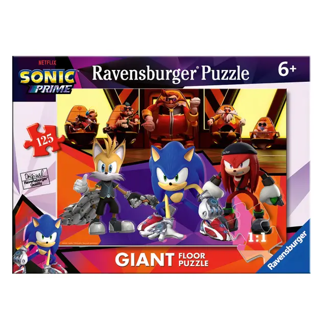 Ta velikanska talna sestavljanka iz 125 delov vas popelje v epski svet Sonic Prime.. Na njem je Sonic s svojimi zavezniki in tekmeci v prizorih, ki so neposredno povzeti iz animirane serije.. Sestavljanje je enostavno in zabavno, deli pa so zasnovani tako, da so odporni na dolgotrajno rokovanje.. Uganke pomagajo izboljšati koncentracijo in ustvarjalnost ter izboljšujejo koordinacijo rok in oči..