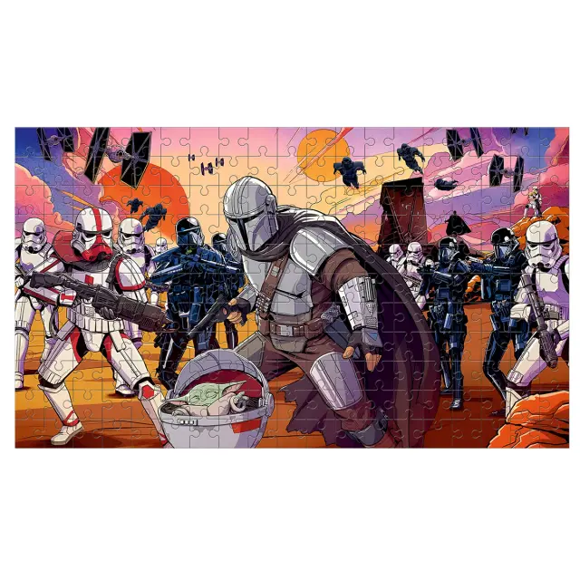 Ta 200-delna znanstvenofantastična sestavljanka prikazuje epski prizor iz spopada v filmu Mandalorijanec iz Vojne zvezd.. Deli so mehki na otip in se zlahka sestavljajo, zato je sestavljanje užitek.. Ta sestavljanka, ki je odlična igra sestavljanja, spodbuja koordinacijo rok in oči ter koncentracijo.. Otrokom omogoča, da se potopijo v vesolje Vojne zvezd in ob zabavi odkrivajo like iz sage..