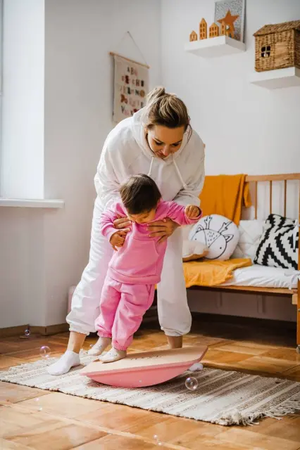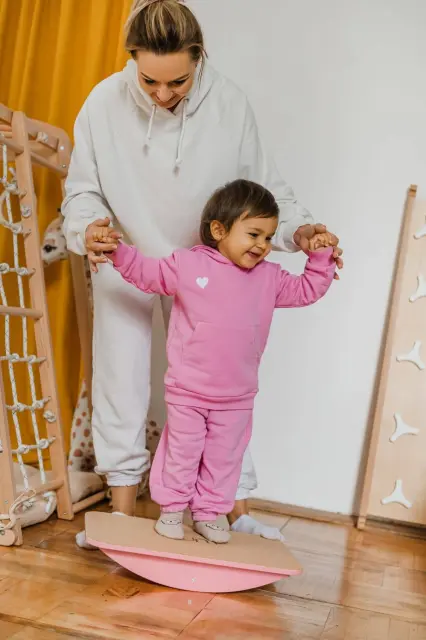 Ravnotežna deska za otroke balansirni žarek belgau roza pluta