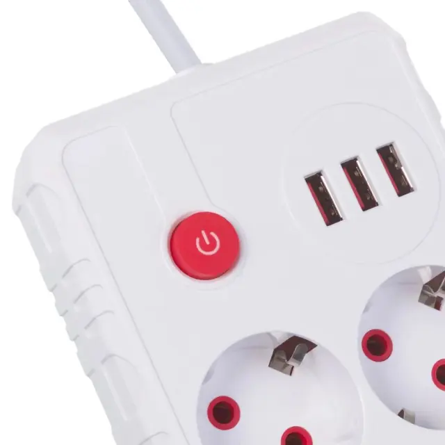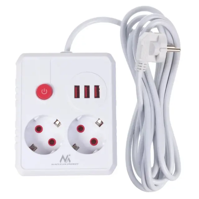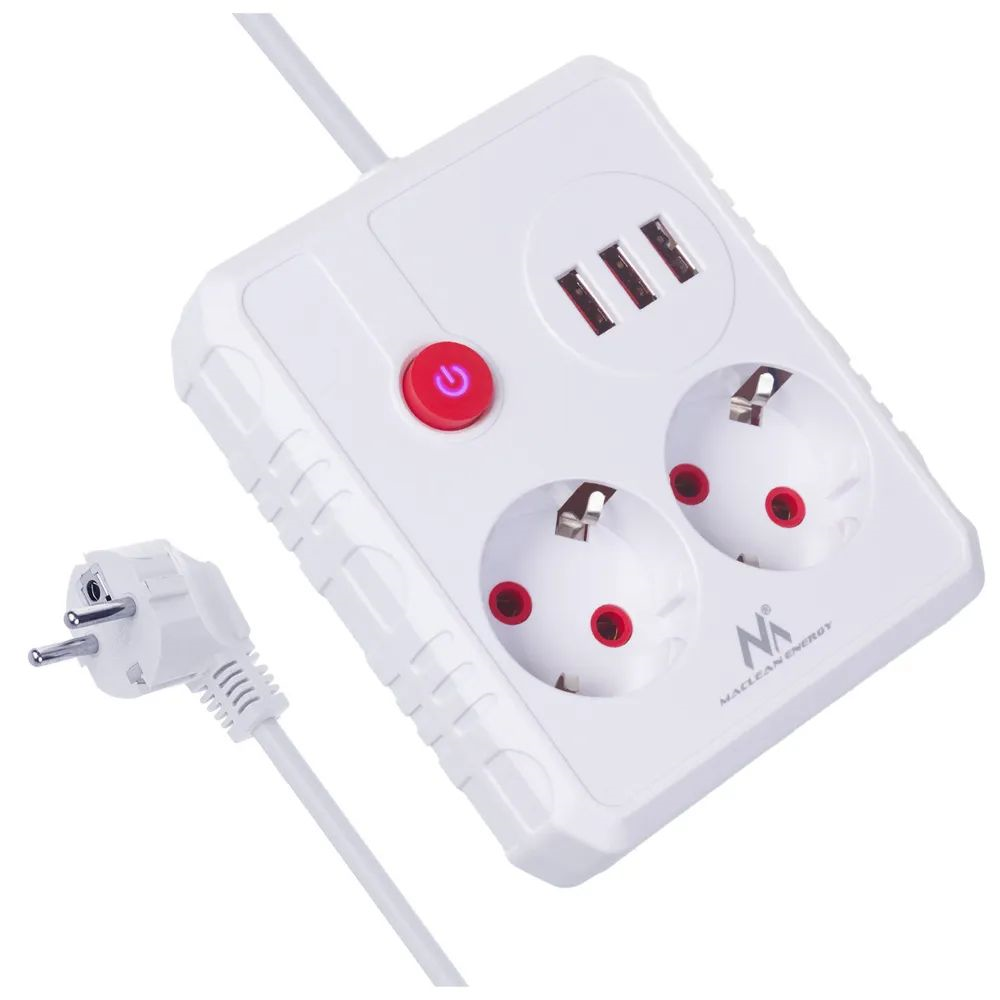 Razdelilec podaljšek MacLean MCE388W s 3 vtičnicami + 3xUSB, 3m, bel