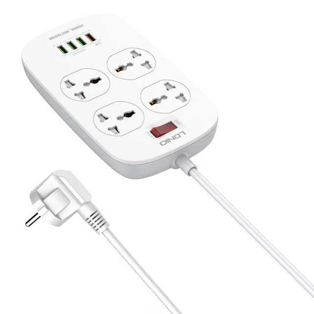 Zagotovite si več prostora z razdelilnikom Ldnio. Opremljen je s 4 AC vtičnicami in 4 USB vhodi, ki podpirajo protokola QC3.0 in AUTO-ID, tako da lahko v hipu napolnite več naprav hkrati. Razdelilnik odlikujejo številni varnostni elementi, njegova izhodna moč pa znaša 2500 vatov, tako da lahko brez skrbi priklopite večino gospodinjskih aparatov in mobilnih naprav.