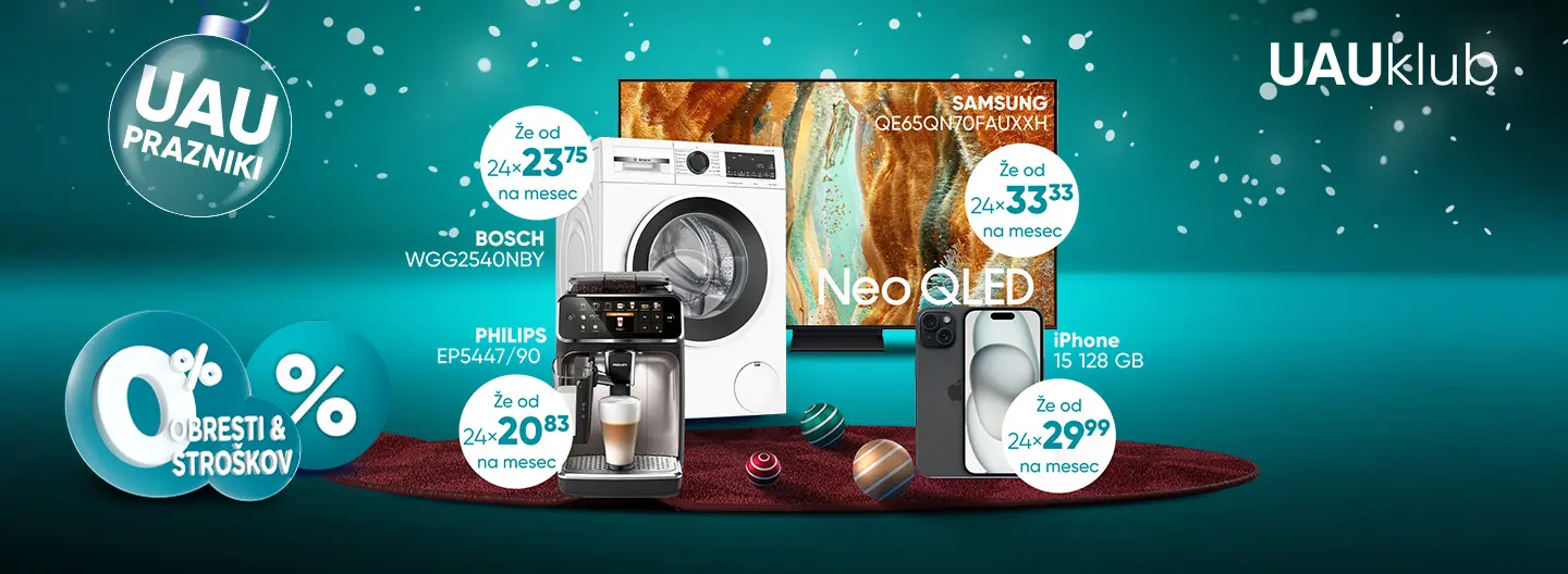 Razreži ceno bele tehnike, televizorjev, izdelkov za osebno nego, malih hišnih aparatov, prenosnikov in mobilnih telefonov na do 24 obrokov, brez obresti in stroškov! Ponudba je na voljo za člane UAU kluba in velja za izbrane izdelke prodajalca Big Bang v obdobju od 1. do 31. 12. 2025 oziroma do razprodaje zalog.