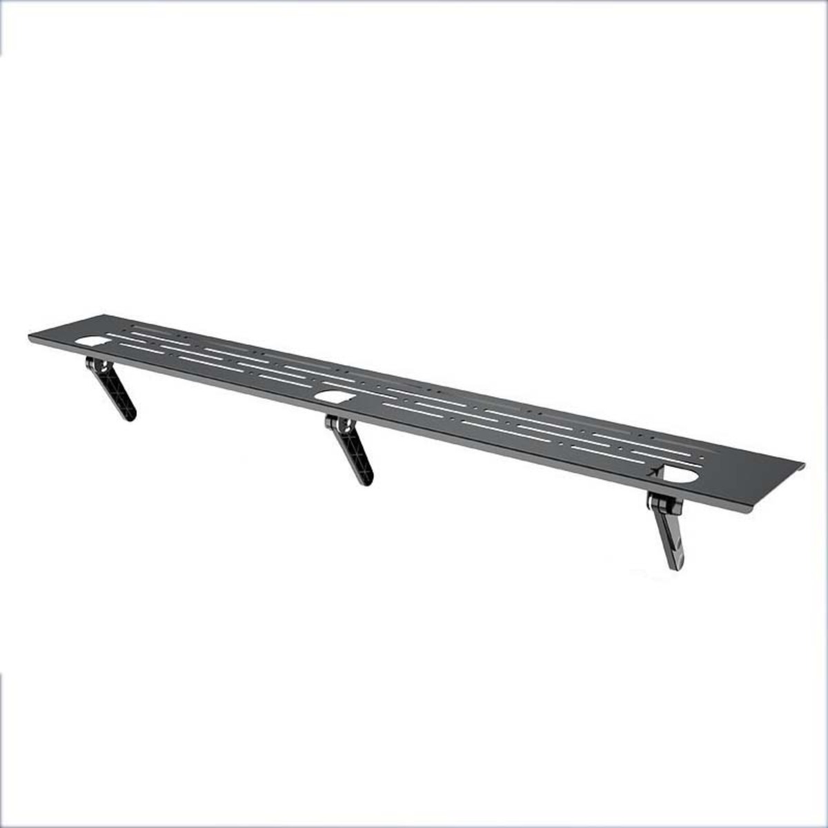 Prostor za varčevanje: Povečajte svoj življenjski prostor s to razširjeno 90 cm TV polico. Zasnovana je za urejeno organiziranje vaših medijskih naprav, kot so TV sprejemniki, usmerjevalniki in pretočne naprave. Odpravlja nered in ustvarja čisto, organizirano zabavno območje. Popolna je za manjša stanovanja, študentske sobe ali kateri koli prostor, kjer je optimizacija površine ključnega pomena. Uživajte v urejeni in funkcionalni postavitvi z vsemi osnovnimi elementi na dosegu roke. Trdna konstrukcija iz hladno valjanega jekla in ABS zagotavlja stabilnost in zanesljivost, zaradi česar je praktična rešitev za sodobno bivanje. Imejte daljinske upravljalnike, igralne konzole in druge pripomočke urejeno shranjene ter preoblikujte svojo izkušnjo gledanja.