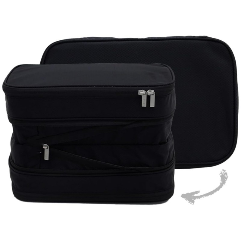 Povečajte prostor: Ta razširljiv organizator oblačil je zasnovan za povečanje prostora v vaši prtljagi ali omari. Njegova edinstvena zasnova z dvojno zadrgo vam omogoča, da svoja oblačila učinkovito stisnete in organizirate ter ustvarite več prostora za druge bistvene stvari. Kot nalašč za potovanje ali domačo uporabo, vam ta organizator pomaga ohranjati vaše stvari čiste in urejene ter preprečuje gubanje in poškodbe med prevozom. Razširljiva funkcija zagotavlja dodatno zmogljivost, ko je to potrebno, zaradi česar je vsestranski za različne potrebe pakiranja.