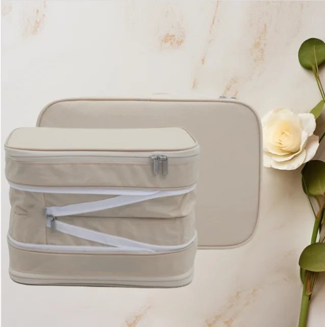 Razširljiv organizator za oblačila z dvojno zadrgo Beige S