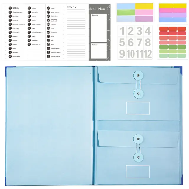 Prilagodljiva organizacija: S priloženimi nalepkami (6 velikih, 8 srednjih, 21 majhnih) lahko preprosto označite vsak predal za hitro in enostavno prepoznavanje vsebine. Dokumenti bodo urejeni in na svojem mestu.