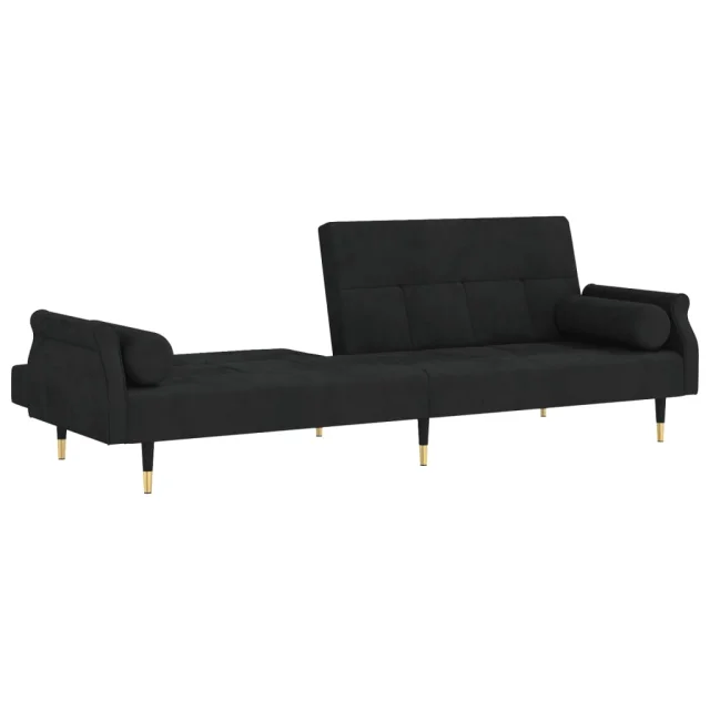 Raztegljiv kavč - Raztegljivi divan z blazinami črn žamet