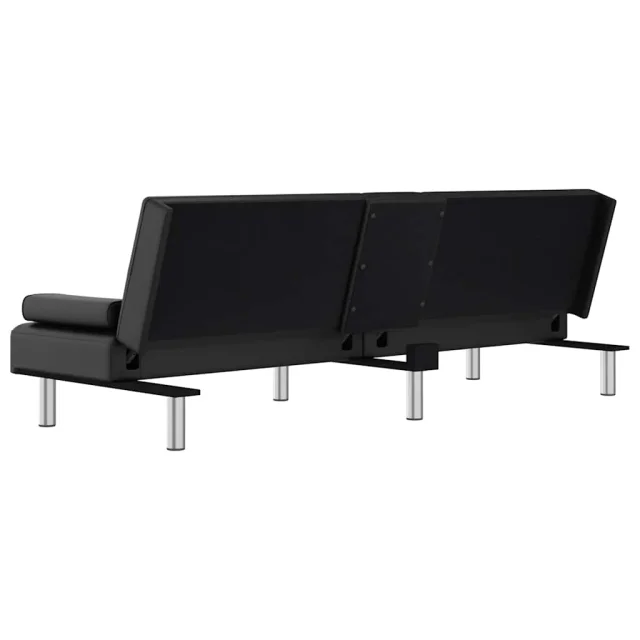 Raztegljiv kavč - Raztegljivi divan z držali za skodelice črno umetno usnje