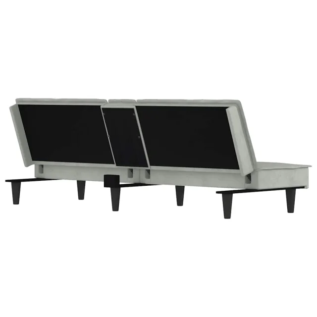 Raztegljiv kavč - Raztegljivi divan z držali za skodelice svetlo siv žamet