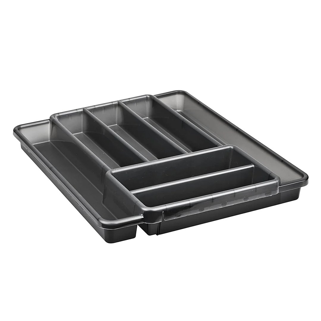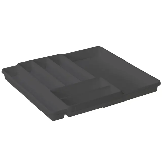 Vložek oz. organizator za jedilni pribor Rotho Domino ima preprosto obliko in je izdelan iz visokokakovostne plastike (brez BPA) z zaobljenimi robovi. Prilega se vsaki kuhinji in ga lahko v hipu pospravite v vsak predal. Širina pladnja za jedilni pribor je brezstopenjsko nastavljiva (od 34 do 51 cm) . Zaradi tega je idealen za standardne predale od 40 do 60 cm. Skupaj ima 7 predelkov, pri čemer je veliki predal na desni nastavljiv po širini in omogoča shranjevanje jedilnega pribora in večjih predmetov kot so zamaški, klešče, škarje in ostali kuhinjski pripomočki. Z lahkoto poskrbi za red v vaši kuhinji. Obrišite ga z vlažno krpo.