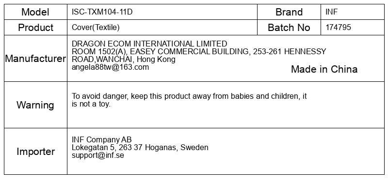Da bi se izognili nevarnosti, hranite ta izdelek stran od dojenčkov in otrok, ni igrača.