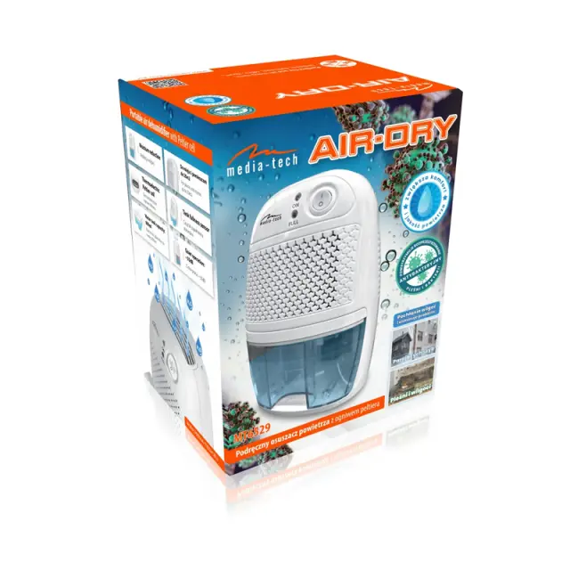 Razvlaževalec zraka Media-Tech AIR-DRY MT6529 uporablja napredno termoelektrično Peltierjevo celico za učinkovito zmanjšanje vlažnosti v prostorih. Zahvaljujoč temu pomaga omejiti rast škodljivih plesni in bakterij, kar je ključnega pomena za ohranjanje zdravega okolja v naših domovih in na delovnem mestu.