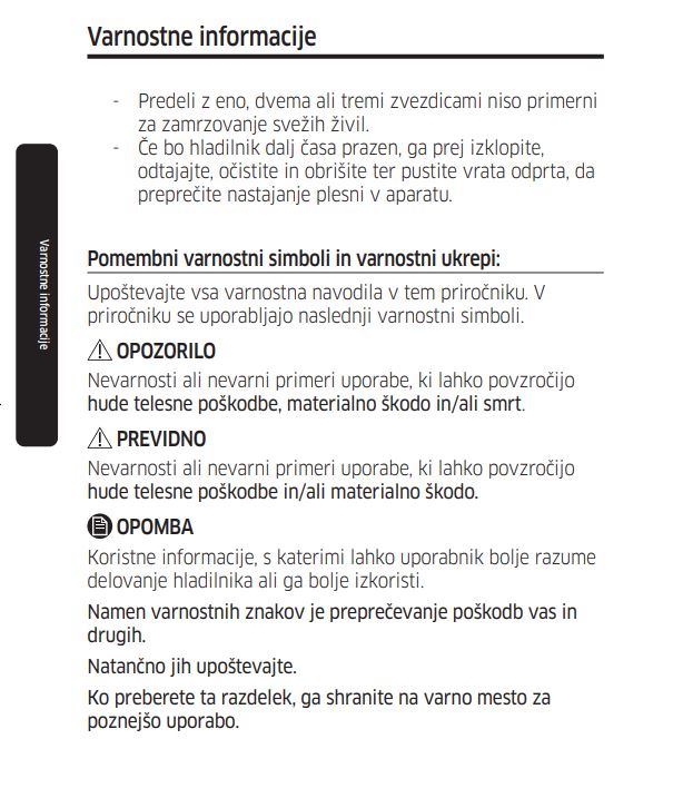 Produktni dokumenti z opozorili ter varnostnimi in drugimi ključnimi informacijami, povezanimi z določenim izdelkom.