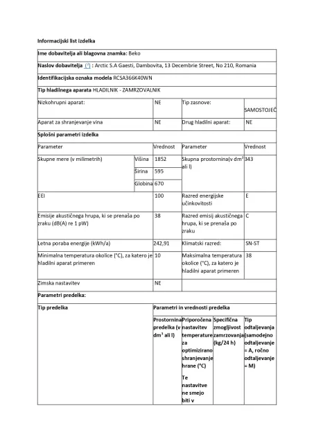 BEKO RCSA366K40WN hladilnik z zamrzovalnikom spodaj