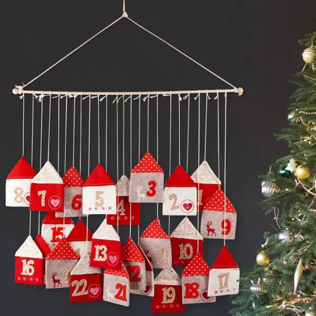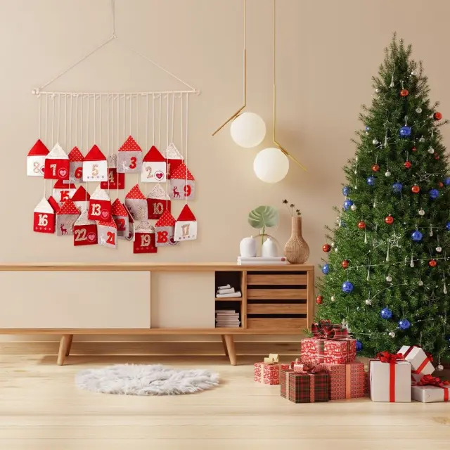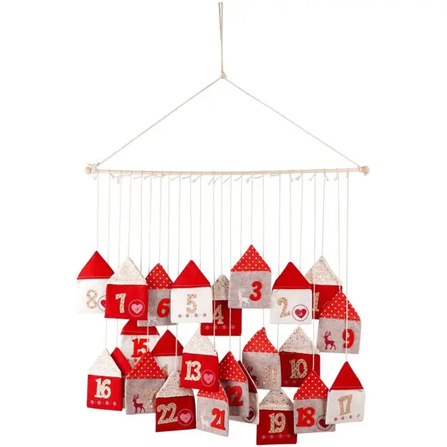 Rdeč adventni koledar iz filca 70x60 cm