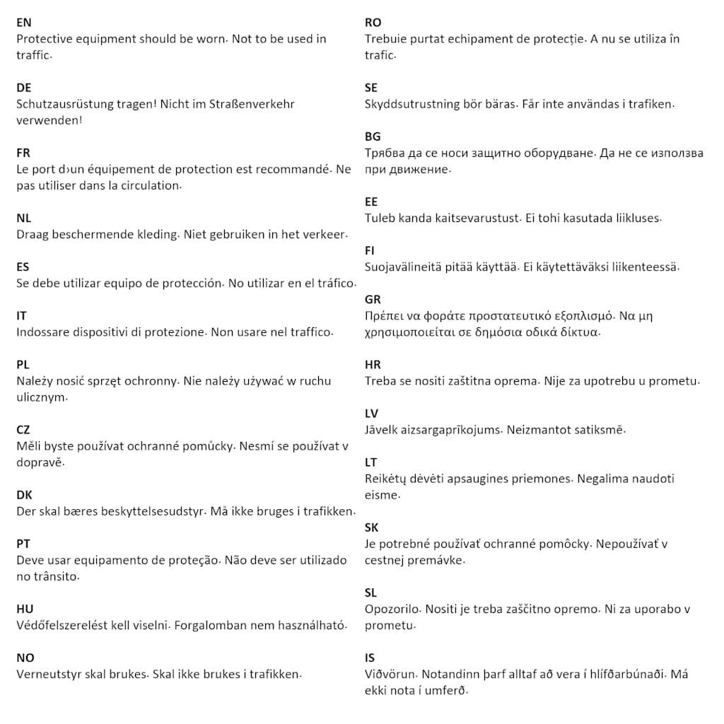 Nositi je treba zaščitno opremo. Ni za uporabo v prometu.