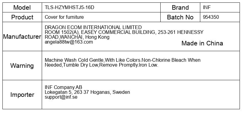 Strojno pranje, hladno, nežno, s podobnimi barvami. Belilo brez klora, ko je potrebno, suho v sušilnem stroju, takoj odstranite.