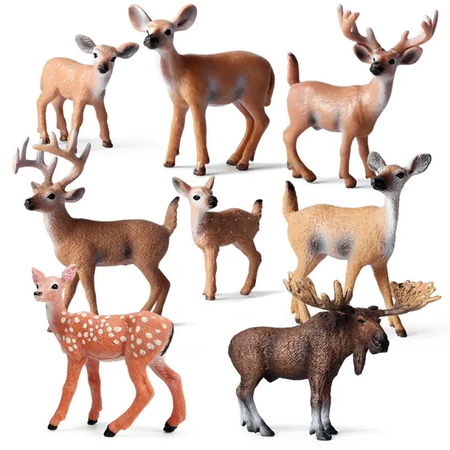 Zelo realističen dizajn: Vsaka figurica jelena je natančno izdelana, da zajame zapletene podrobnosti in realističen videz divjega jelena. Ti modeli izkazujejo izjemno realističnost, od teksture njihovega krzna do nežne krivulje rogovja.