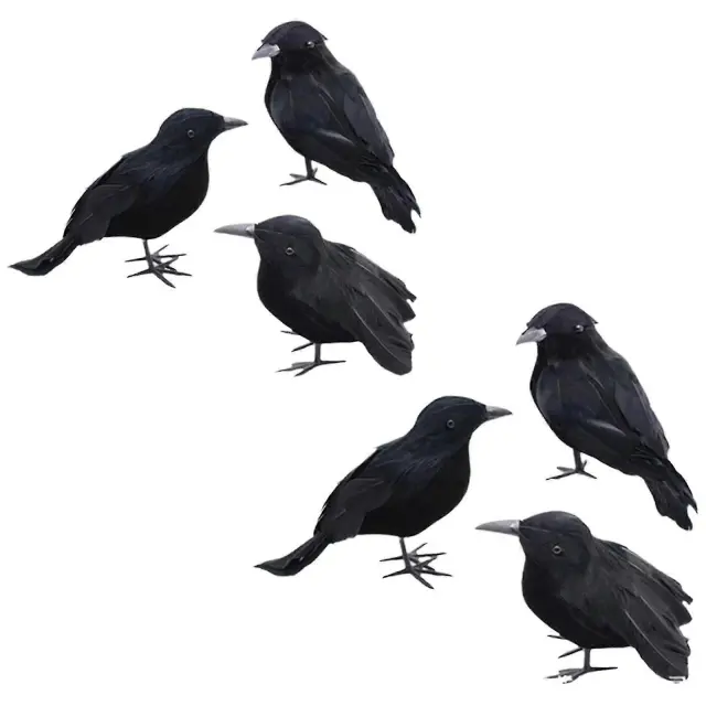 Realistična vrana, črna pernata vrana za okraske za noč čarovnic, ptice, 6 kosov, praznični okraski FLY3947